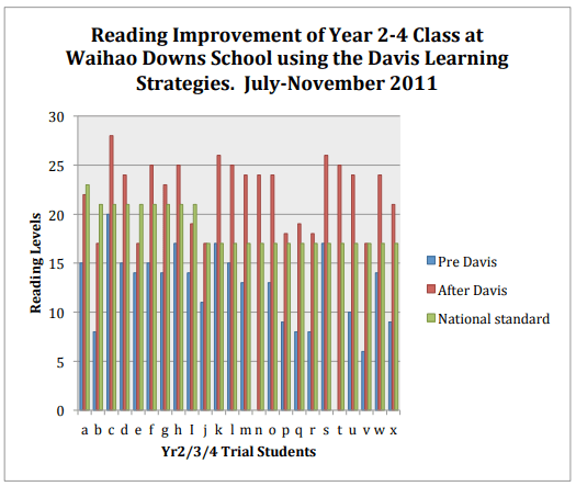 At Waihao Downs School, Davis Learning Strategies were first trialled in 2011 with students reading below standard.